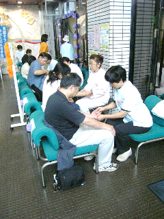 沼津保健センターにて行われた、「沼津健康まつり2006」の“手足のツボマッサージ体験コーナー”